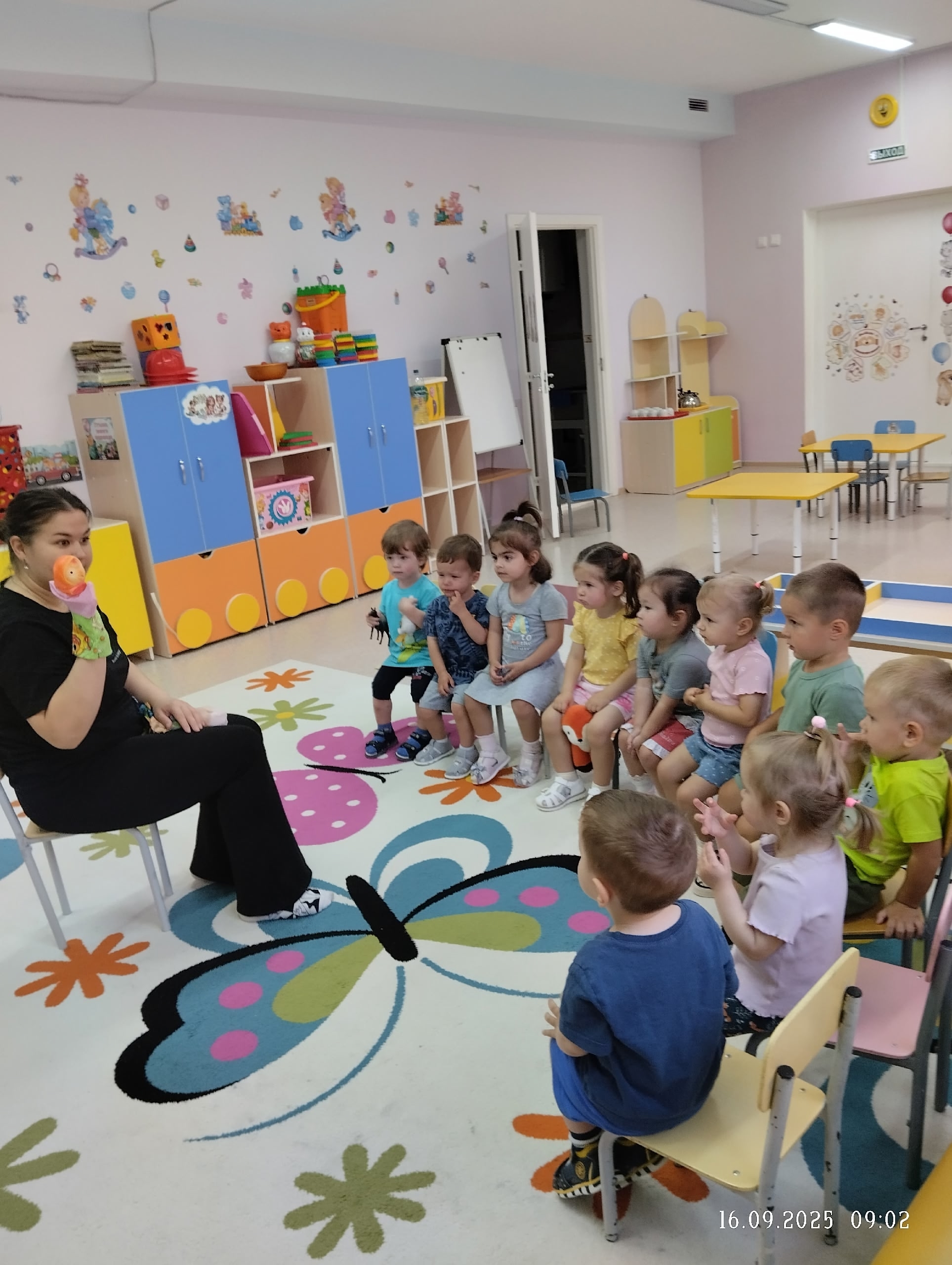 В день кукольного театра дети младшей группы №1 "Курносики" послушали сказку "Курочка ряба".